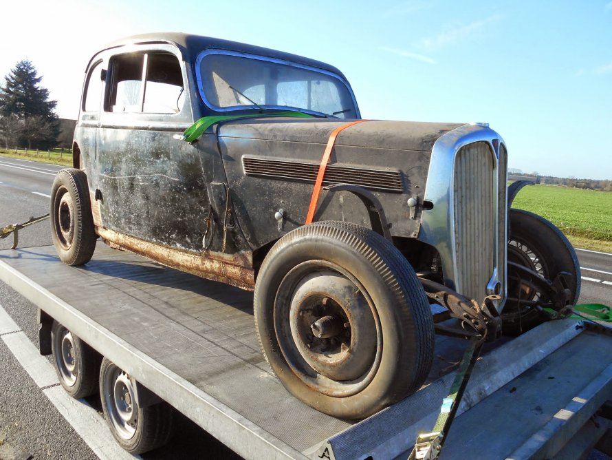 De auto gaat binnenkort naar de RDW voor een (voor)keuring en zal dan voorzien worden van een loodje aan chassis en motor. De P2 uit 1938 is in 1973 geïmporteerd door mijn vader (G.B. Löwik), het originele kenteken, kentekenplaat en invoerpapieren zijn nog aanwezig. Invoerrechten in 1973 : 45 GBP…..
