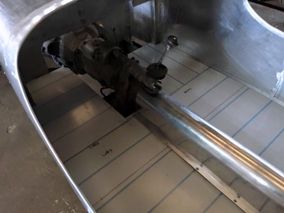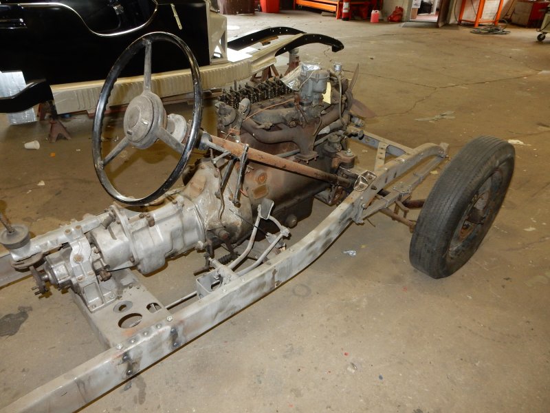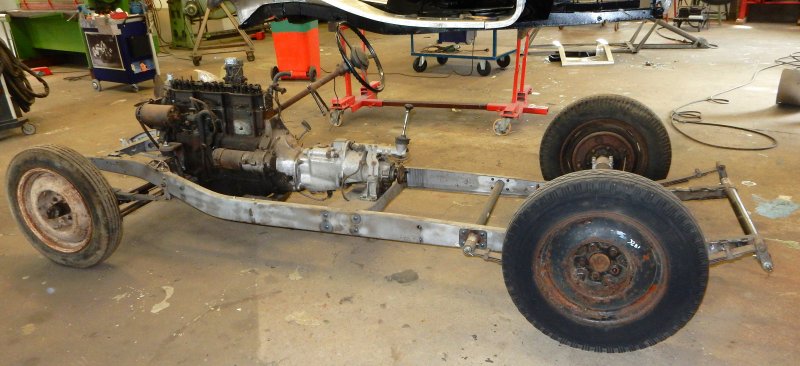 Het schiet mooi op met het chassis van de Rover 10 Special.... de 6 cilinder staat er mooi op, 28 cm naar achteren. Ook de pedalbox is naar achteren verschoven, stuurkolom lengte en hoel moet nog nader bepaald worden.