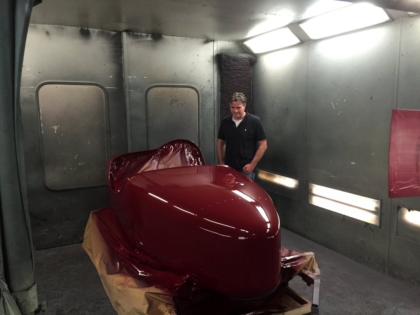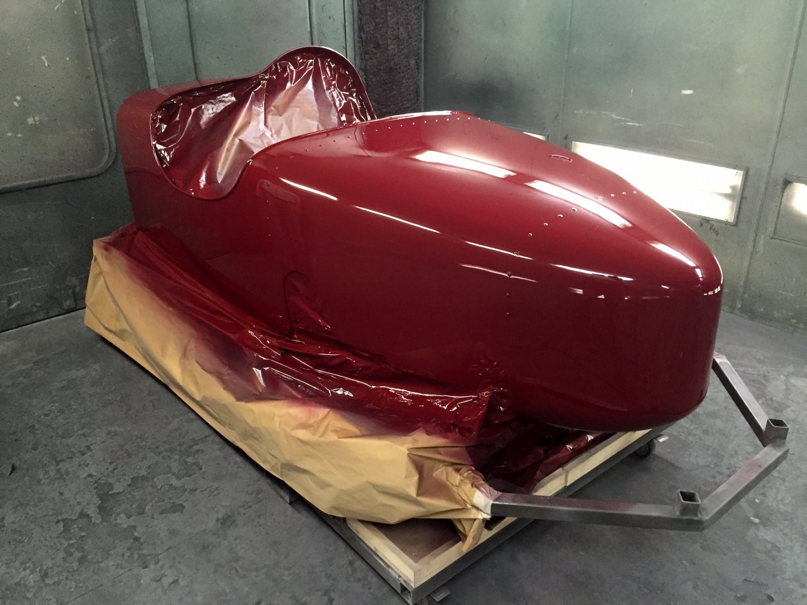 Ook het "neusje"van de Rover 10 Special zit in de kleur / erg mooi geworden.......... ben benieuwd als deze volgende week op de body staat !
