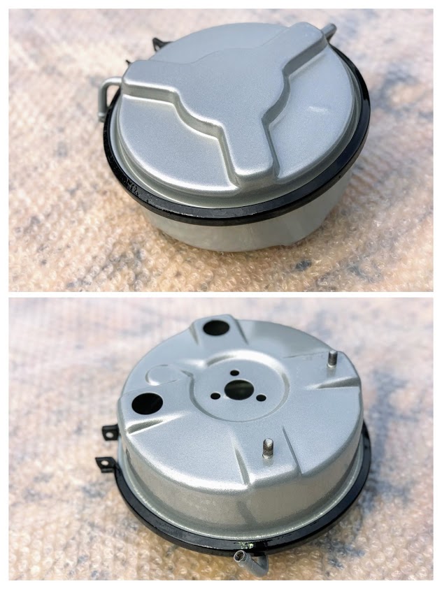 2 mooie & puntgave P6 brandstof tanks; na ontlakken / stralen nu gereed voor mooie duurzame laag POEDERCOATING