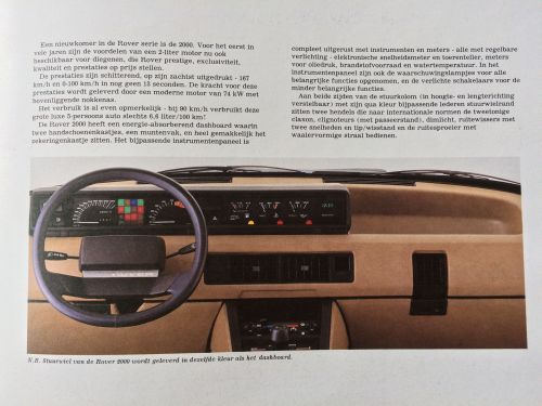 Deze Nederlandse folder verkeert nog in een perfecte staat en heeft 28 pagina's met informatie over de Rover 2000, de Rover 2600 S, de Rover 3500 Vanden Plas en de Rover 2300S.