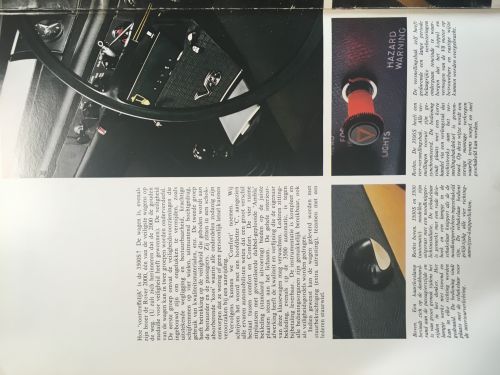Een Nederlands talige folder met onder andere tekst en foto's. De folder bevat tabellen met onder andere het prestatievermogen van de auto.