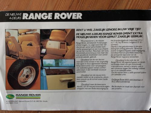 Deze in het Nederlands gedrukte folder bevat informatie over de nieuwe 4-Deurs Range Rover.
