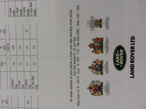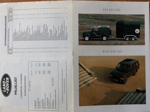 'Verleg de grenen met vierwielaangedreven veelzijdigheid' zo luidt de kop van deze Nederlands gedrukte folder. De Folder heeft informatie over de Ninety, de One Ten, de County en de Range Rover.