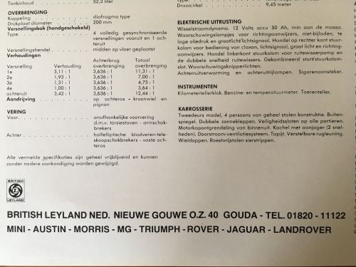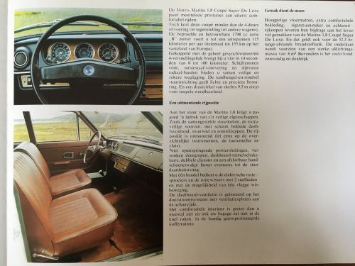 Een Nederlandse folder met 2 pagina's informatie en foto's + een achterkant met specificaties van de Marina.
