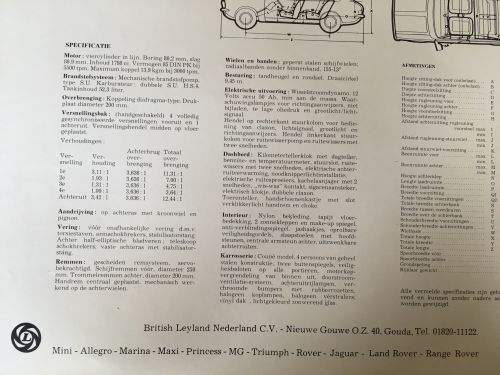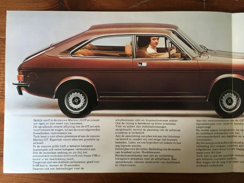 Een Nederlandse folder van 2 pagina's met informatieve teksten en foto's over de 'nieuwe' Marina + specificaties op de achterkant