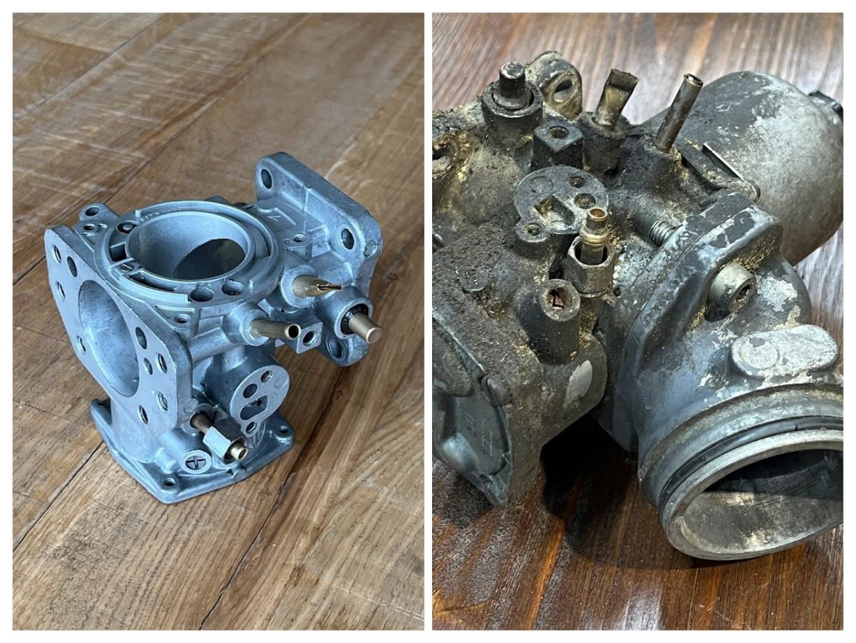 Dit exemplaar is chemisch ontlakt, gestraald en HG gepoedercoat. De HIF’s zijn gedemonteerd, Soda blasted, untrasoon gereinigd en compleet gereviseerd.